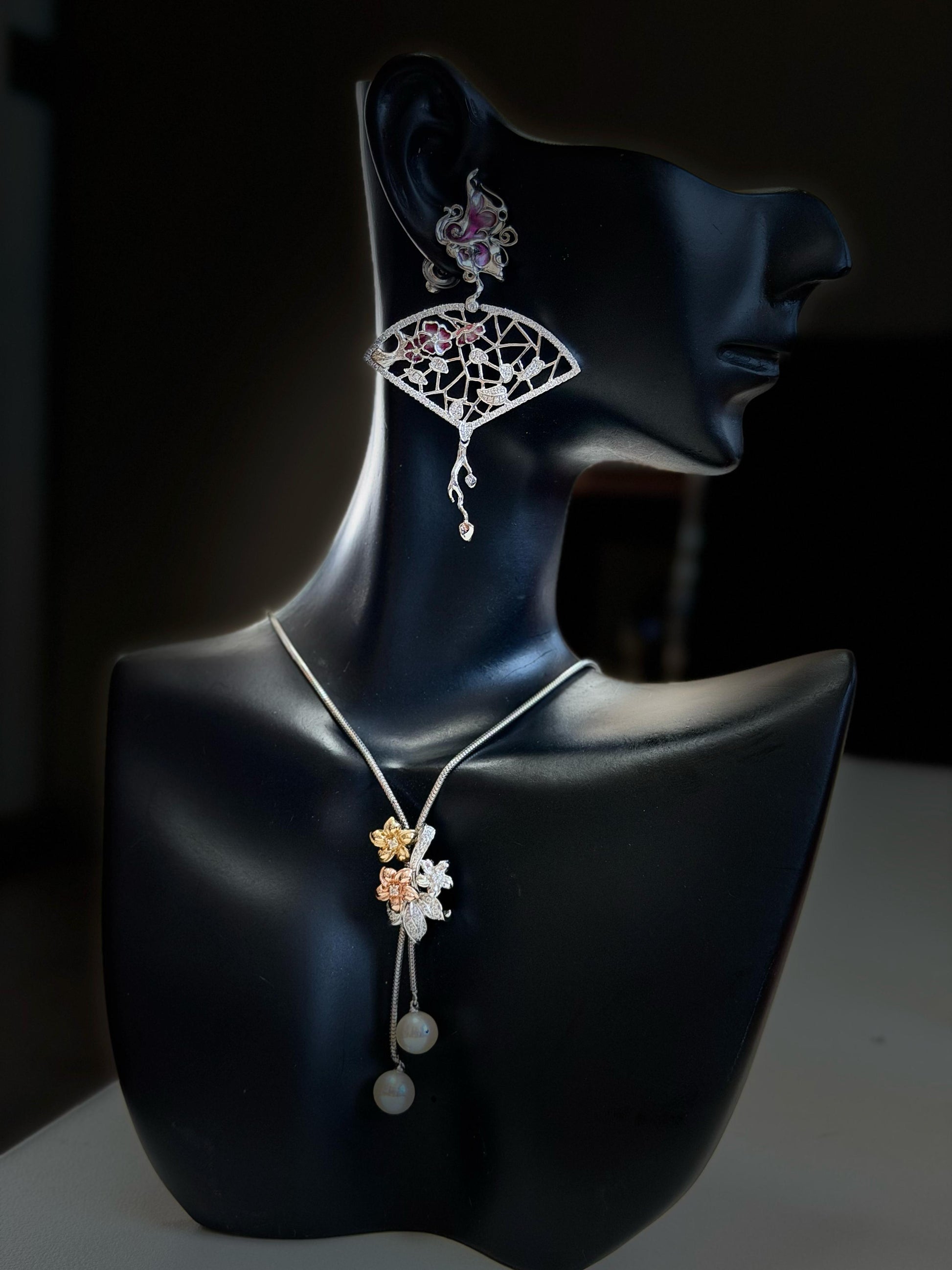 18K金琺瑯鑽石耳環